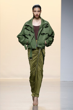 The silhouette is bodyconscious, active, often elongated, not fully earthbound. Construction is at the heart of Antonin’s work.