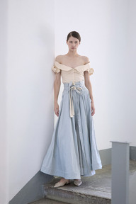 Skirt Dress Memole, a hybrid between dream and architecture, in organza and gauze in sky or ivory.