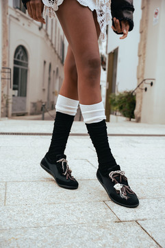Alongside them, black & white ballerinas, boots, and Mary Janes completed the collection.