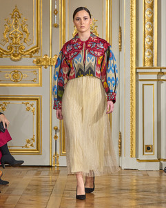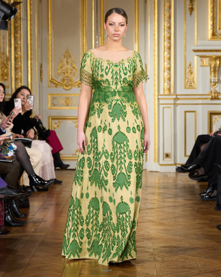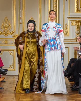 The event showcased creations from Morocco (Regalia by Hind Berrada, Amina Benzekri, Maison Renata, as well as a collection of antique caftans from Madame Aziza Belkhayat’s collection), Jordan (Laith Maalouf, Eman Al Ahmad, Leyla Kashani, Sara Mansour, Batool Amar), Egypt (Hany El Behairy), Oman (Yoland), Lebanon (Bernard Jabbour), Japan (Yuna Hattori), the Czech Republic (Jitka Klett), Serbia (Natasa Saric, Marija Sabic, Bata Spasojevic), Uzbekistan (Ra’no Khamroeva, Nargis by Nargisa Jabbarova, Noila Djalolova, Shakhaziz by Shakhnoza Muzrapova), Moldova (Maison Riché), Romania (Nadia Gorjan), Guatemala (Marvin Bendana), Turkmenistan (Gowher Gouvernet, Chynar), and the Caucasus (Naalamar).